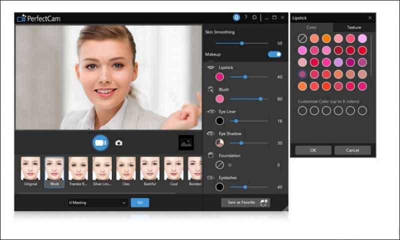 CyberLink PerfectCam Premium é o software que suporta o trabalho de maquiagem no rosto, webcam, a partir de maquiador profissional. PerfectCam vai ajudar você parece perfeito na sua webcam desfrutar de brilho, contraste e exposição de vídeo, ideal para reuniões on-line e até mesmo aplicado para suavizar a pele.
